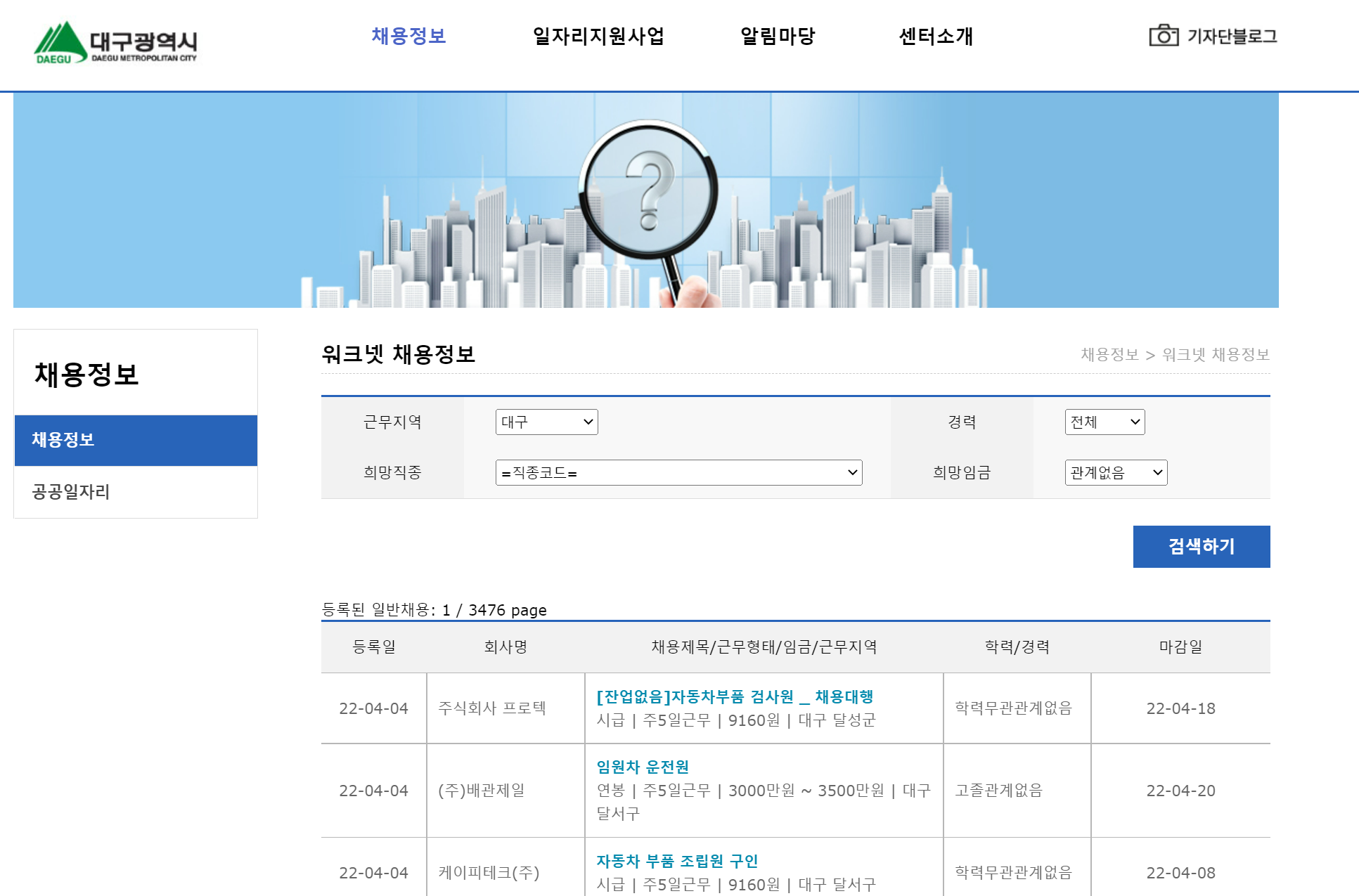 | 김포 일자리 센터 채용 정보 BEST3 (0) | 2022.04.18 |