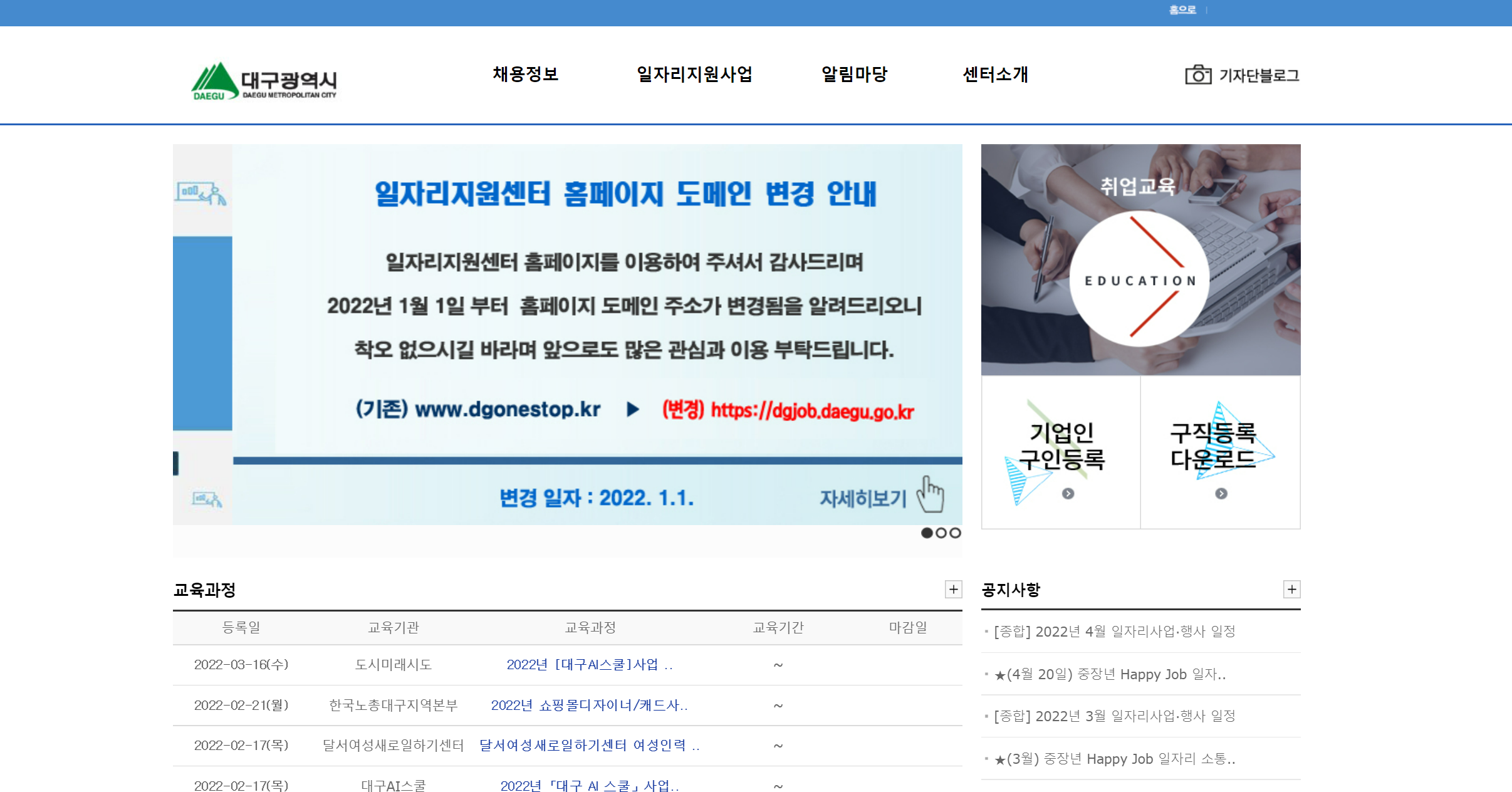 네이버나 다음과 같은 포털 사이트에서 "대구 원스톱 일자리 센터"를 검색해 홈페이지에 들어갑니다.