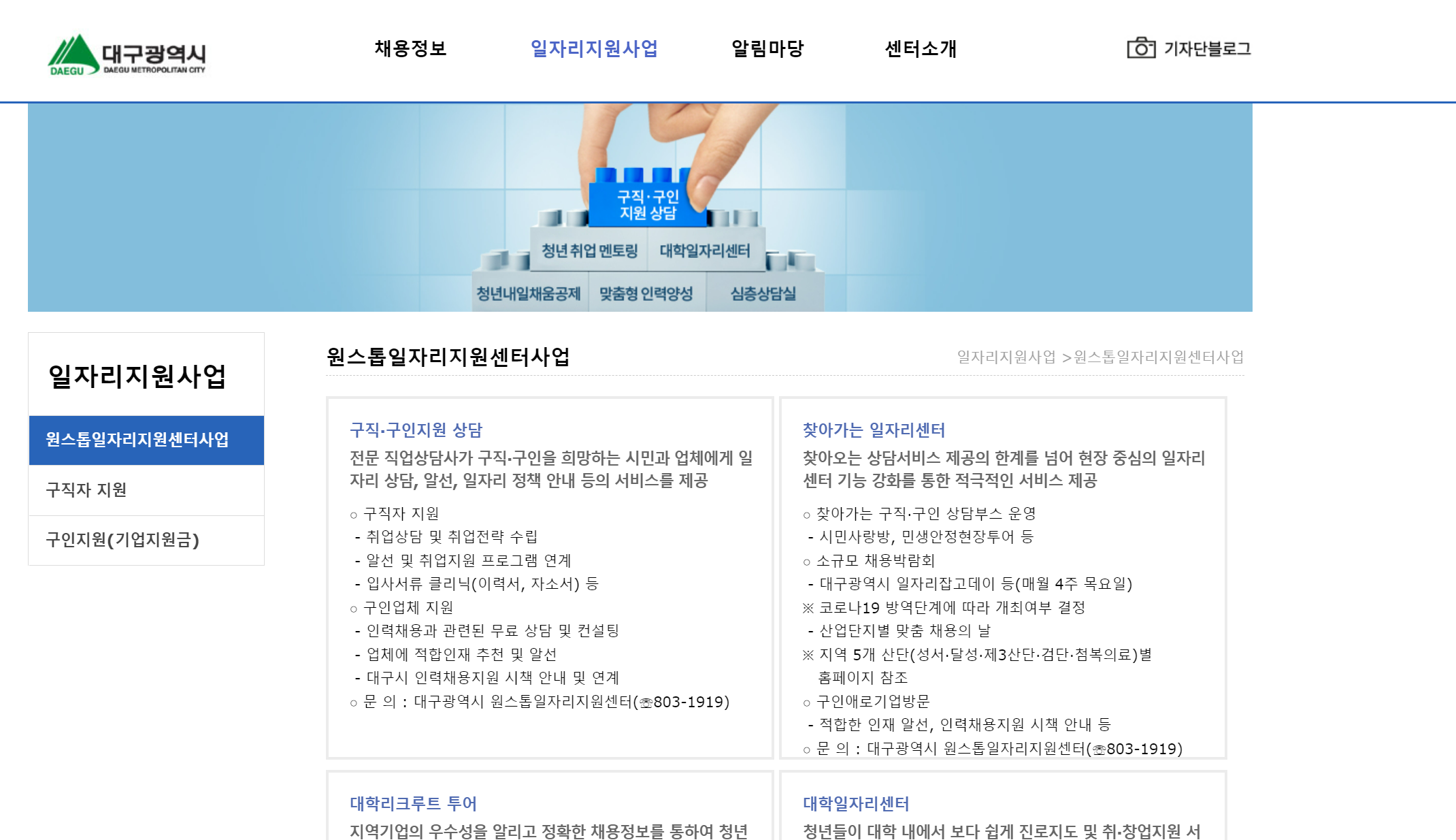 오늘은 대구 지역에서 일자리를 구하고 계신 분들께 유용한 일자리 정보가 있는 "대구 원스톱 일자리 지원센터"에 대해 정확하고 빠르게 알려 드리겠습니다.