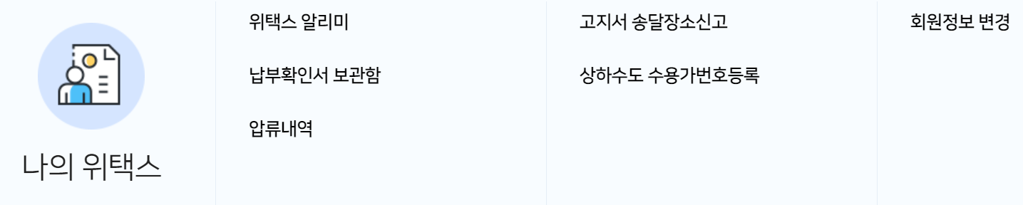 마지막으로 나의 위택스에서는 위택스 알리미, 납부 확인서 보관함, 압류내역, 고지서 송달장소신고, 상하수도 수용가번호등록, 회원정보 변경을 할 수 있습니다.