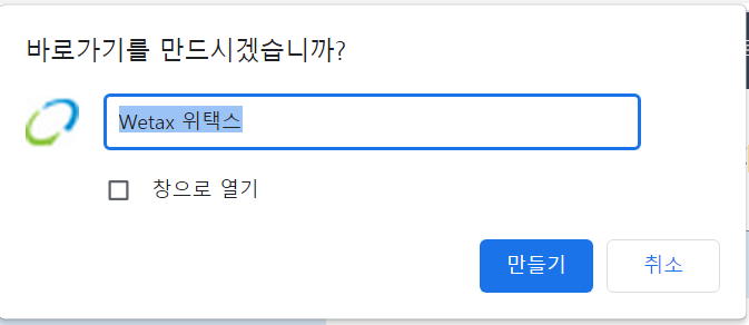만들기를 누르면 바탕화면에 바로 위택스 아이콘이 추가 된 것을 확인 할 수 있습니다.