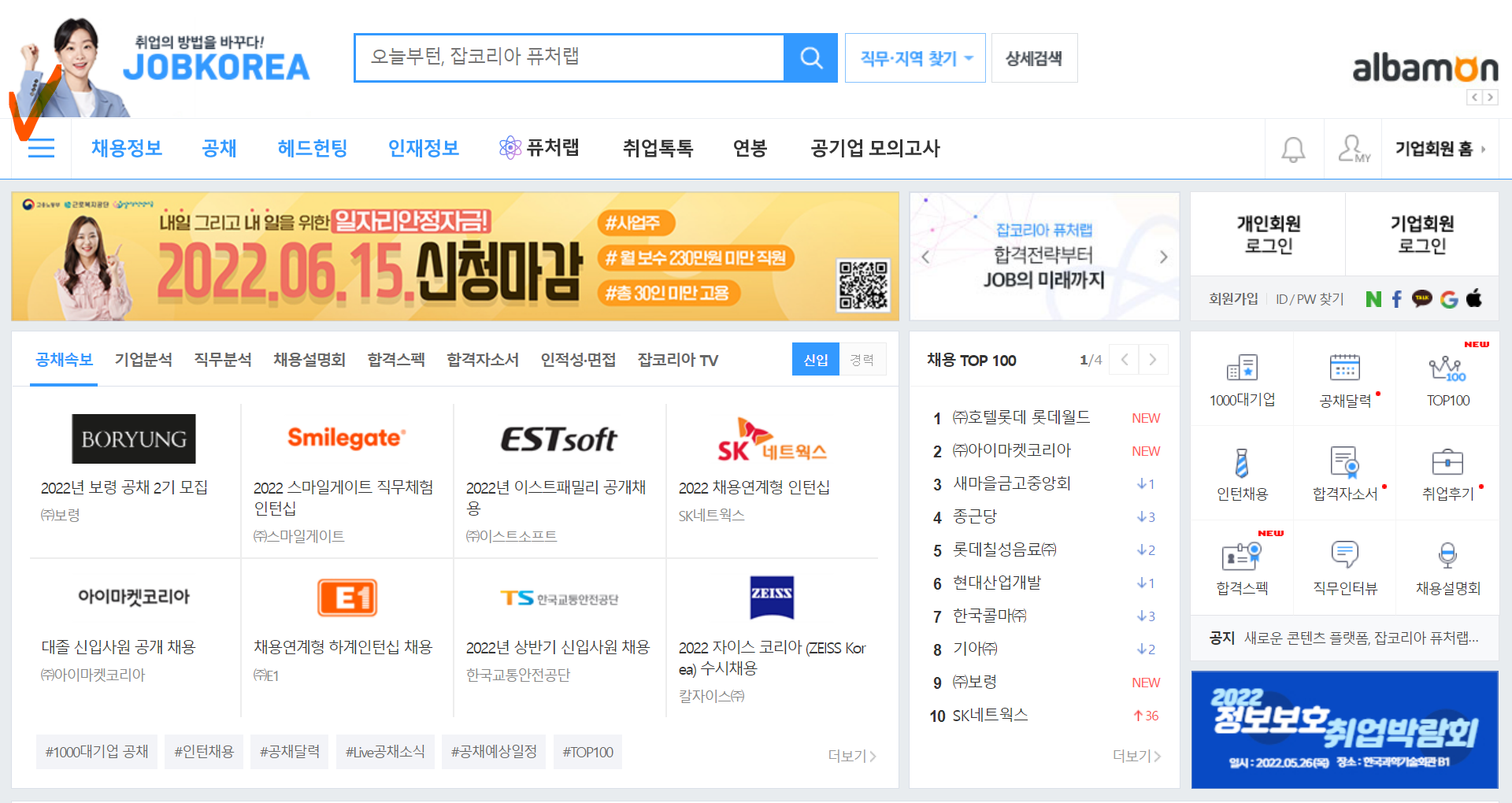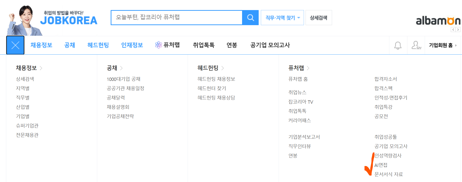 1. 포털 사이트에서 "잡코리아"를 검색해 잡코리아 홈페이지로 들어갑니다.