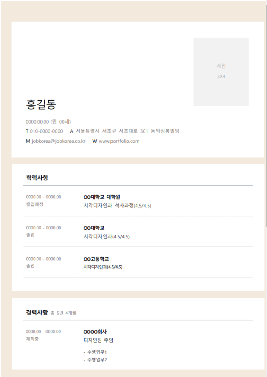 디자인 이력서는 내가 이력서를 통해 디자인도 같이 보여주고 싶다 하는 분들에게 유용한 이력서가 될 것 같습니다.