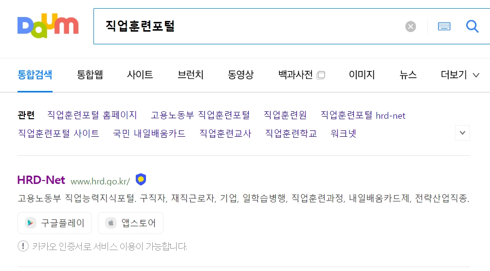국비지원 무료교육 신청방법은 먼저 포털에 "직업훈련포털"을 검색합니다.