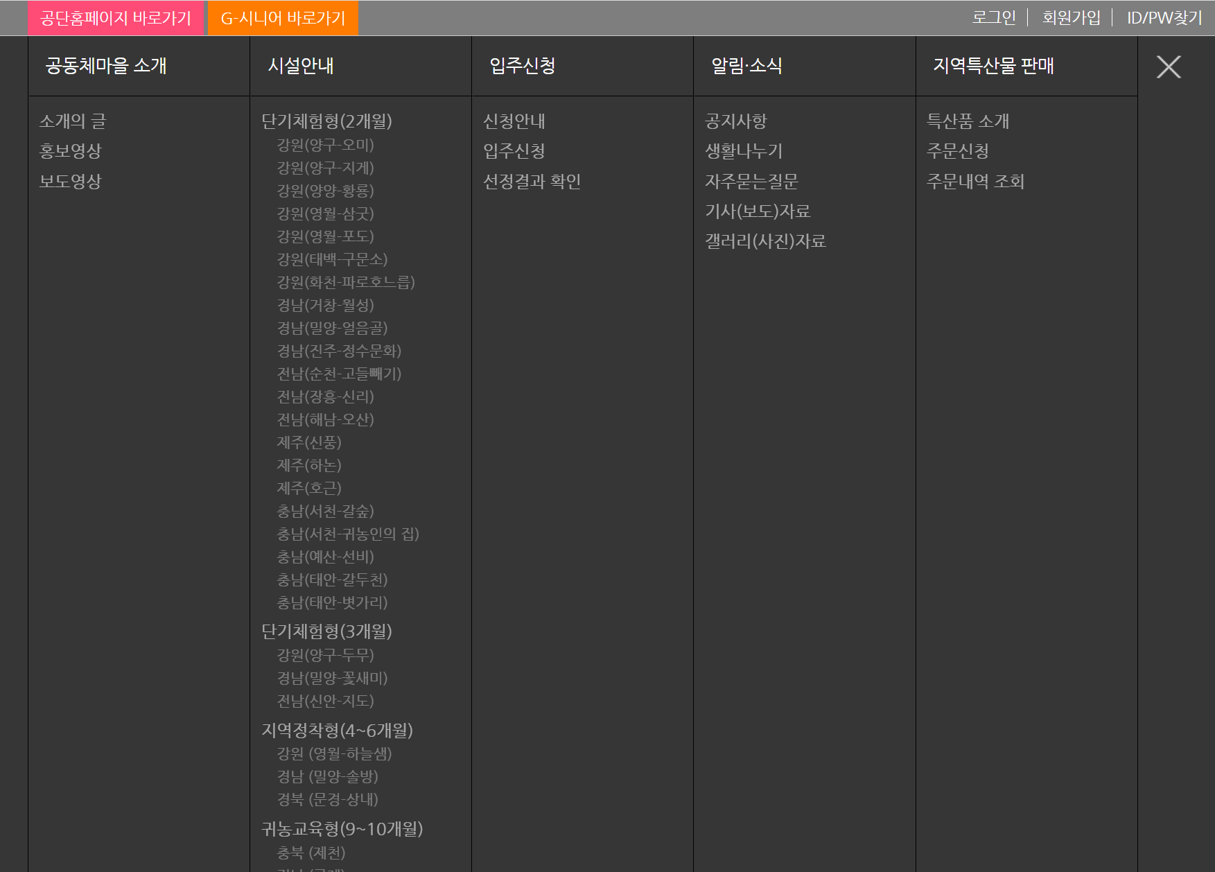 1. 먼저 아래의 링크를 통해 은퇴자 공동체 마을 홈페이지에 들어가줍니다.