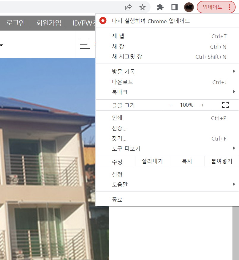 은퇴자 공동체마을 홈페이지 다운 방법 (크롬 브라우저 기준)