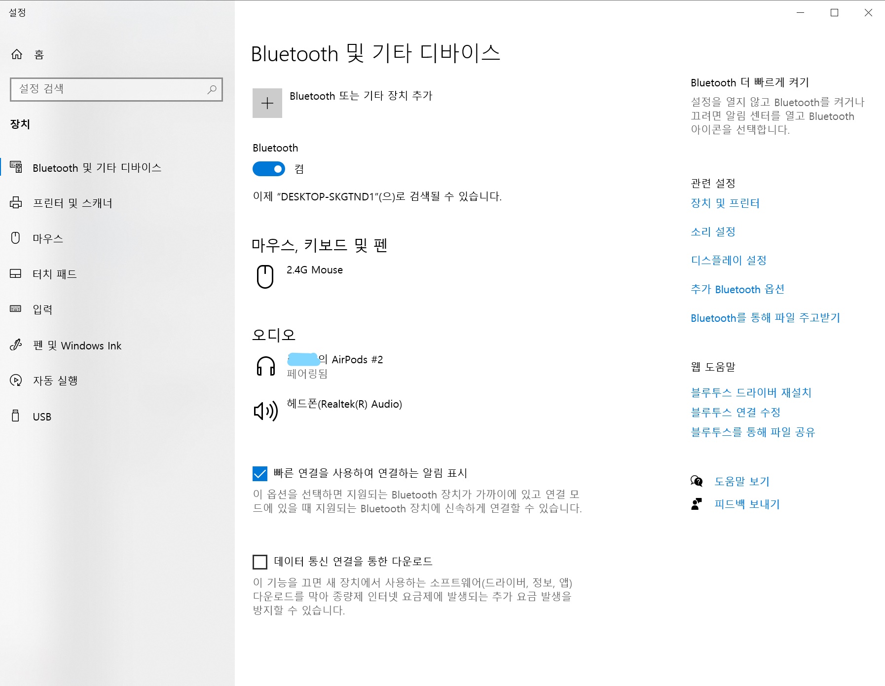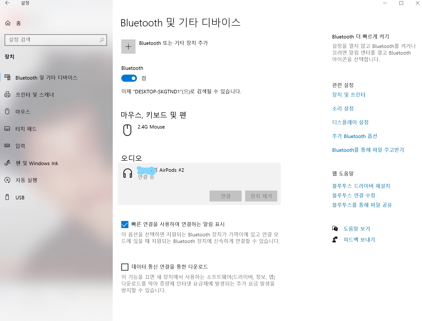 윈도우 노트북 에어팟 연결 방법