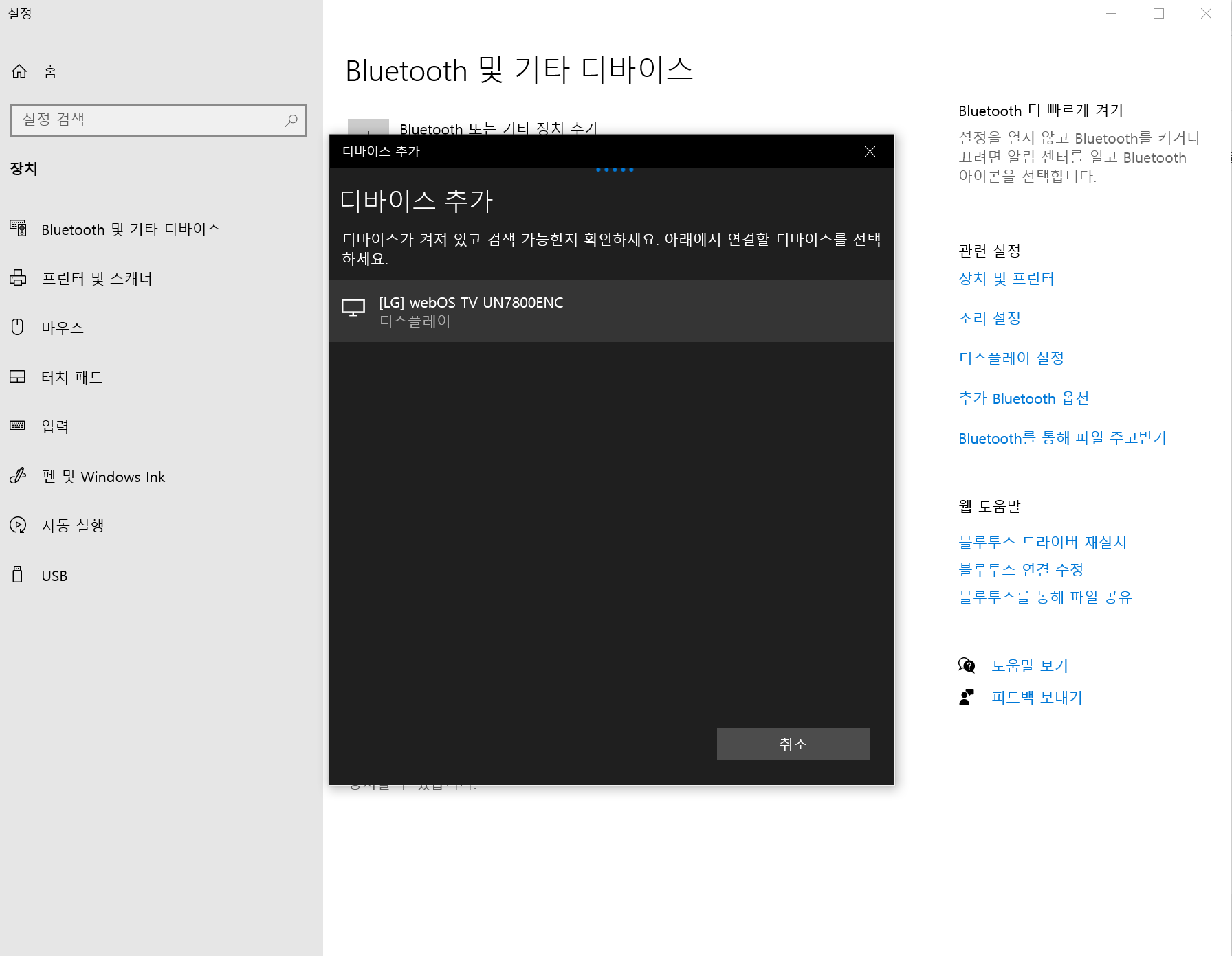 저는 엘지 그램에서 연결한것이지만 똑같은 윈도우를 쓰는 삼성 노트북 등에서도 설정의 블루투스 창에 들어가서 설정 하면 바로 연결이 될 것입니다.
