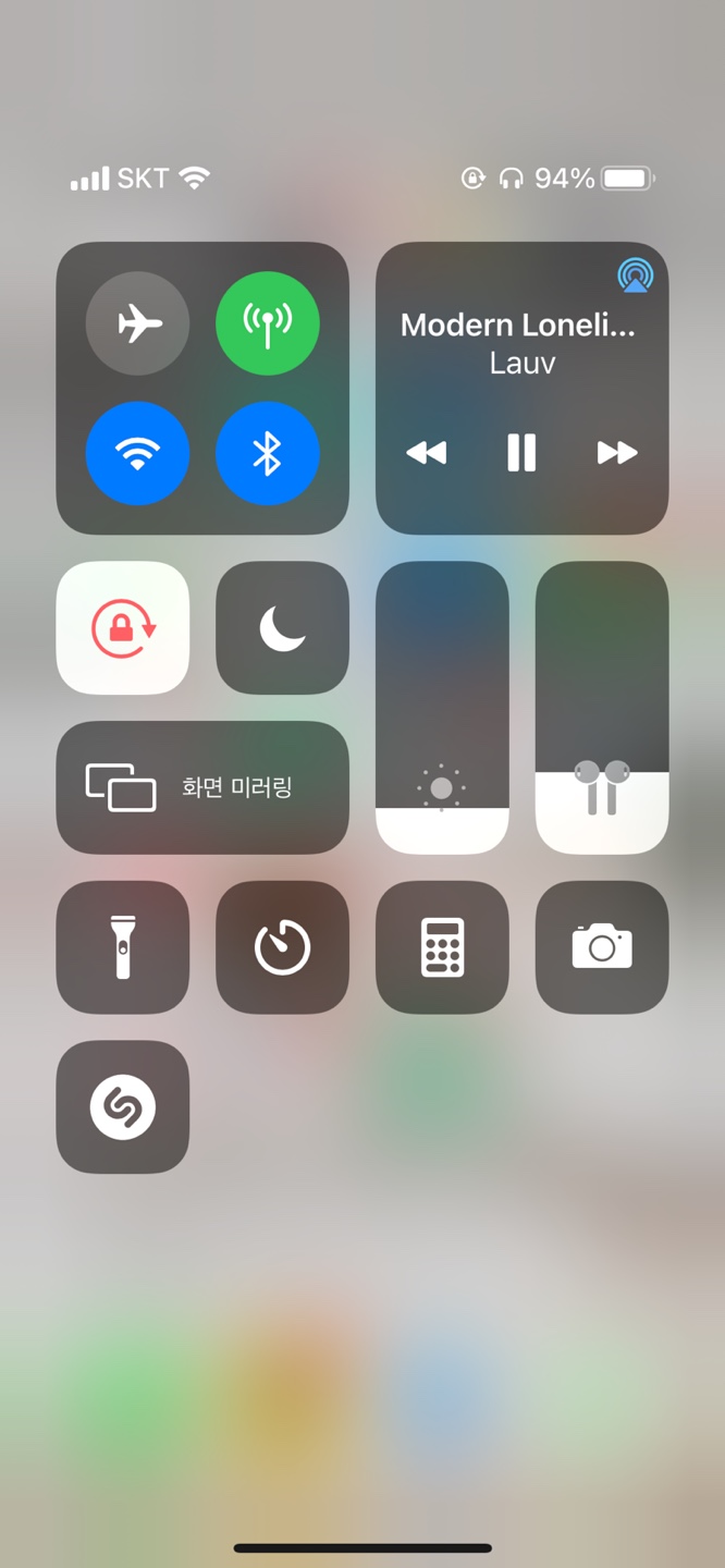 음악을 키고 윗화면을 스크롤 하여 제어센터를 엽니다.