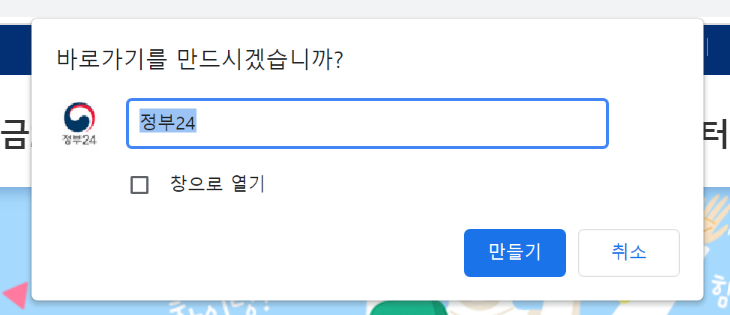 4. 만들기를 누르면 바탕화면에 아래와 같은 정부 24 아이콘 만들어집니다.