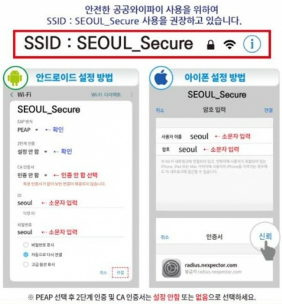 - 서울시 공공 버스정류장 와이파이 사용 방법